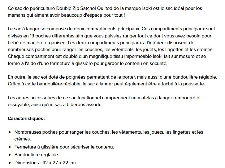 ISOKI Sac nursery Double Zip Satchel Diagonal chocolat