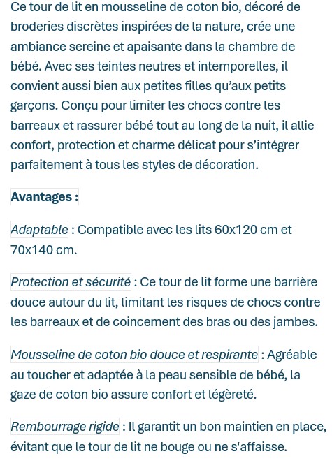Noukie's Tour de lit MUSLIN - WITHE FLUFFY, ORSO & LILY