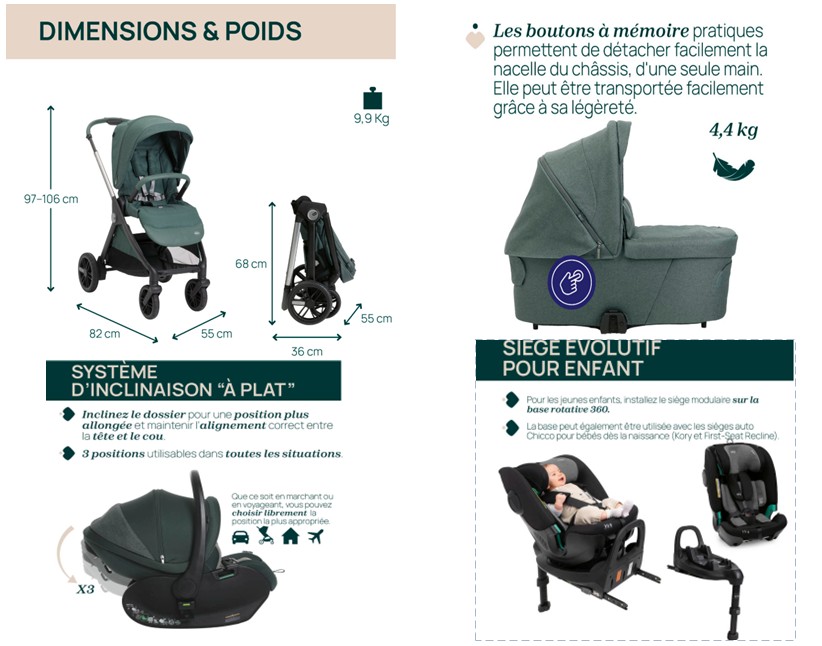 Chicco Trio avec FULL-SEAT Bellagio 2 Recline Fir Tree