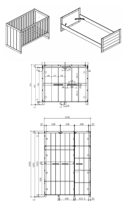 Jaxx Chambre 3 portes + plan à langer ERIK avec Lit tranformable 200/90cm