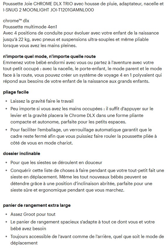 JOIE Poussette Trio CHROME DLX MOONLIGHT